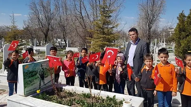 Karapınar Gazi Mustafa Kemal İlkokulu öğrencileri, 2012 yılında Şehit olan Uzman Çavuş İlhan Akkoç'un Apak mezarlığındaki mezarını ziyaret etti.