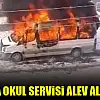 Konya'nın Akşehir ilçesinde park halindeki okul servisi bilinmeyen bir sebeple çıkan yangın sonrası alev alev yandı.