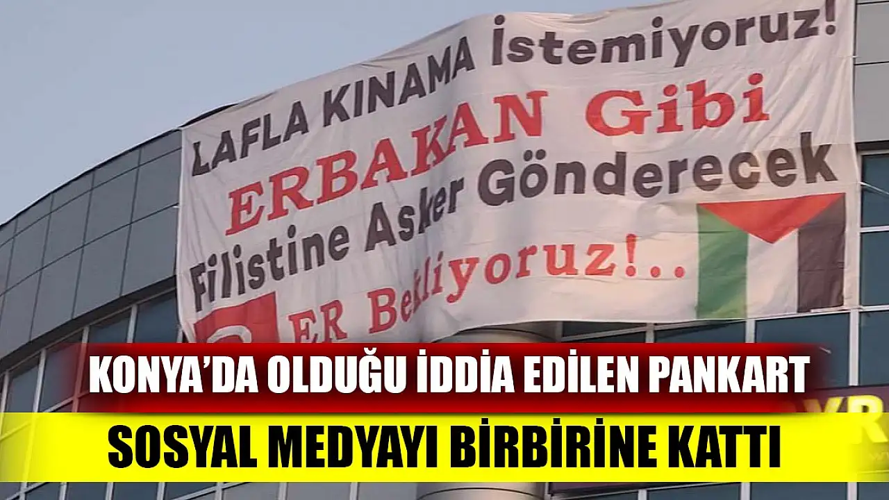 İsrail-Filistin savaşı en yoğun günlerini yaşarken Konya’da asıldığı iddia edilen bir pankart ise gündeme bomba gibi düştü. Pankartta, “Lafla kınama istemiyoruz. Erbakan gibi Filistin’e asker gönderecek ER Bekliyoruz” yazıldı. Pankarttın sosyal medyada düşmesinin ardından birçok kullanıcı da yorum yaptı. Kimi yorumlarda Erbakan döneminde Filistin’e asker gönderilip gönderilmediği tartışılırken, bir yandan da Türk askerinin görevinin sadece Türkiye’yi korumak olduğundan dem vuruldu.