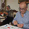 Yaklaşık 11 yıl eline aldığı iğne ve boncuk ile eşine yardımcı olan Hacı Ali Çelik, yakın gözlüğünü takarak deri işleme, boncuk dizme, süs kabağı oyma gibi el sanatları ürünleri yapıyor.