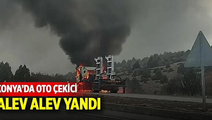 Konya'da seyir halindeki oto çekici alevlere teslim oldu.