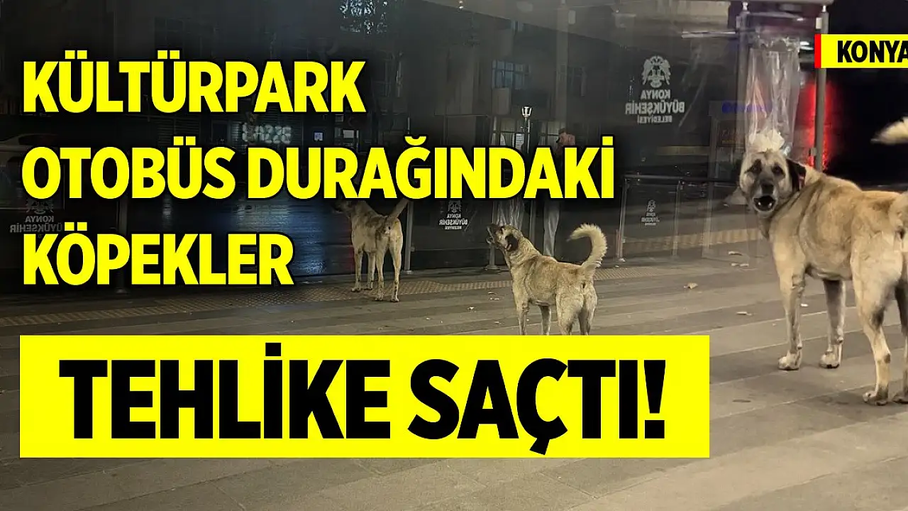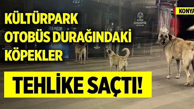 Konya’nın en çok kullanılan otobüs duraklarından biri olan Kültürpark’ta köpekler tehlike saçtı.
