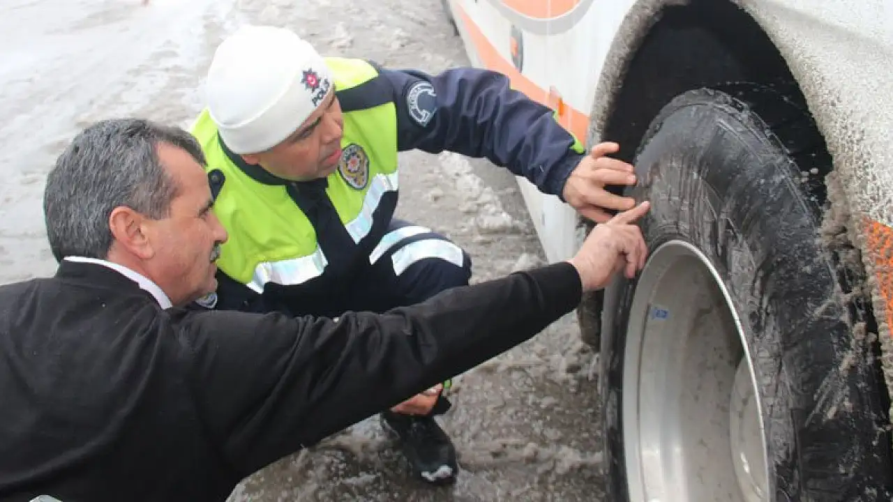 Konya'da otobüslere kış lastiği denetimi