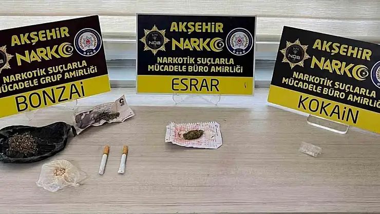 Narkotik ekipleri tarafından şüpheli H.İ.K.'nin üzerinde ve valizinde yapılan aramada 3 gram esrar, 8 gram bonzai, 2 dal bonzaili sigara, 3,5 gram bonzai yapımında kullanılan hammadde ile bir miktar kokain ele geçirildi. Gözaltına alınan şüpheli H.İ.K. hakkında "Uyuşturucu Madde Bulundurmak, Kullanmak, Kabul Etmek ve Uyuşturucu Madde Ticareti" suçlarından işlem yapıldı. Emniyetteki işlemlerinin ardından şüpheli H.İ.K., sevk edildiği Sulh Ceza Hakimliğince tutuklanarak Akşehir Cezaevine gönderildi.
