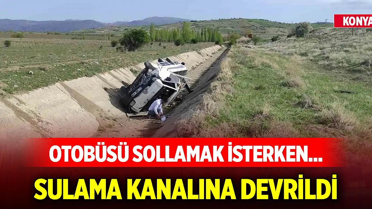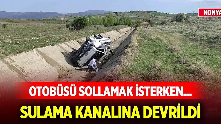 Konya'da yolcu otobüsünü sollamak isteyen kamyonet kontrolden çıkarak yol kenarında bulunan sulama kanalına devrildi.