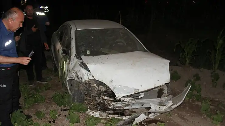 Konya'nın Beyşehir ilçesinde kontrolden çıkan otomobil yol kenarındaki ağaca çarparak ekili sebze bahçesine girdi.