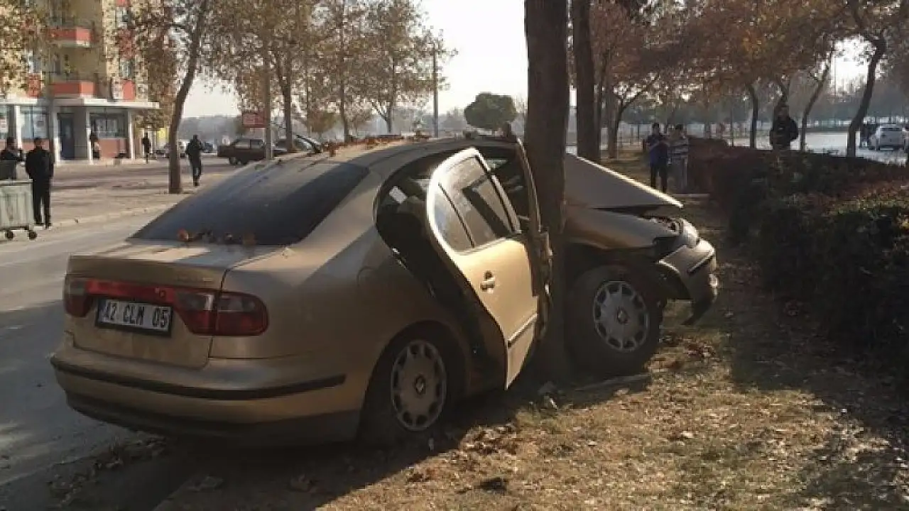 Kaza öğle saatlerinde Karatay ilçesi Fetih Caddesinde yaşandı. Sürücüsünün direksiyon hakimiyetini kaybettiği 42 CLM 05 plakalı otomobil, yoldan çıktı ve refüjdeki ağaca çarptı.