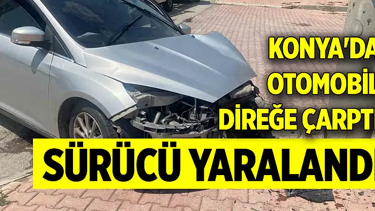Konya'da otomobilin direğe çarpması sonucu sürücü yaralandı.