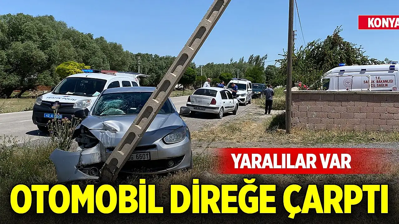 Konya'da otomobil direğe çarptı! Yaralılar var