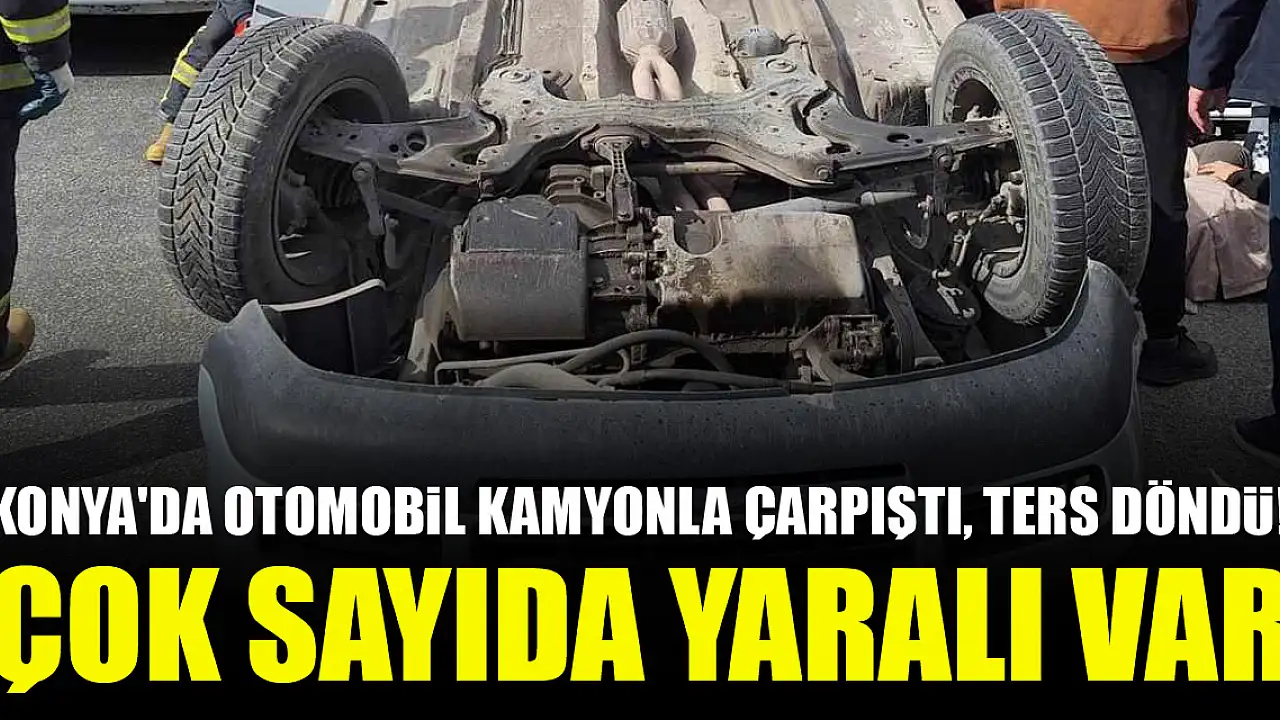 Konya'da otomobil kamyonla çarpıştı, ters döndü! Çok sayıda yaralı var