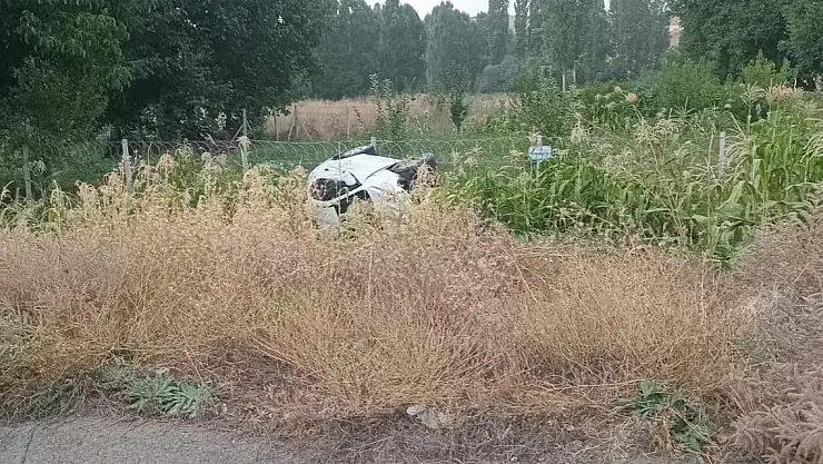 Konya'da otomobil mısır ekili araziye devrildi