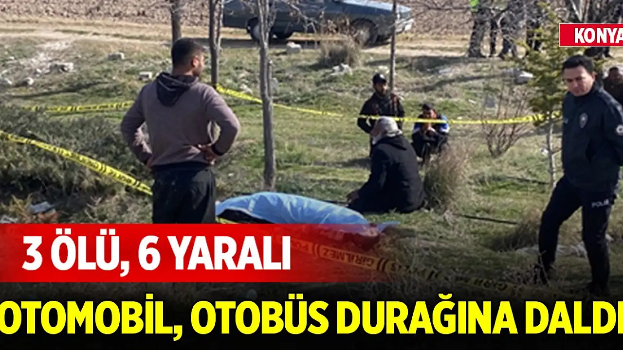 Konya'da, sürücüsünün kontrolünden çıkan otomobil, yolun kenarındaki otobüs durağına daldı. Kazada 3 kişi hayatını kaybetti, sürücüyle birlikte 6 kişi de yaralandı.