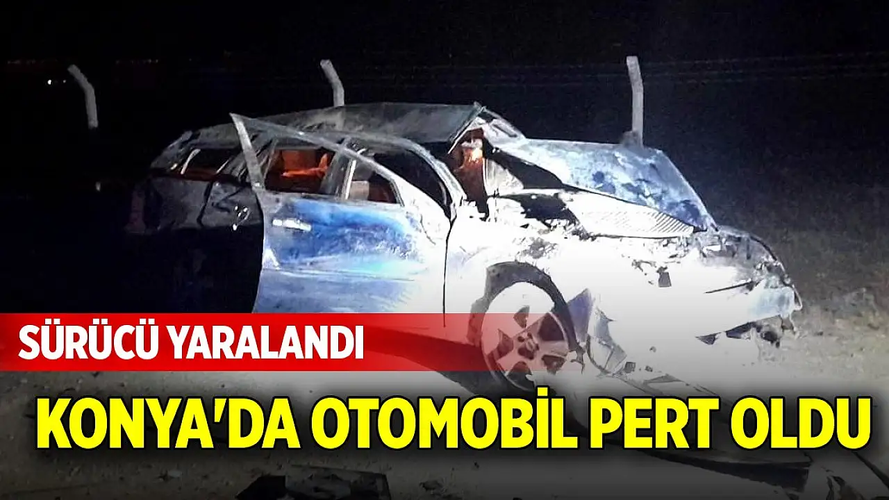 Konya'da otomobil pert oldu, sürücü yaralandı
