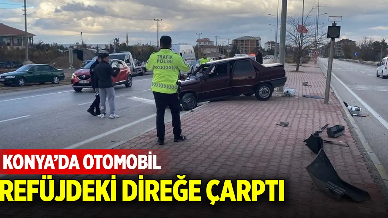 Konya'da otomobil refüjdeki direğe çarptı: 1 yaralı