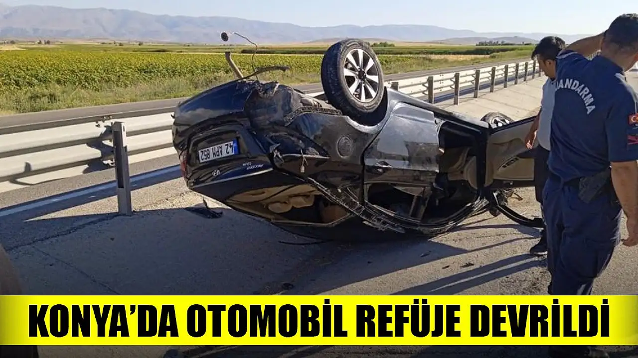 Konya'da otomobil refüje devrildi