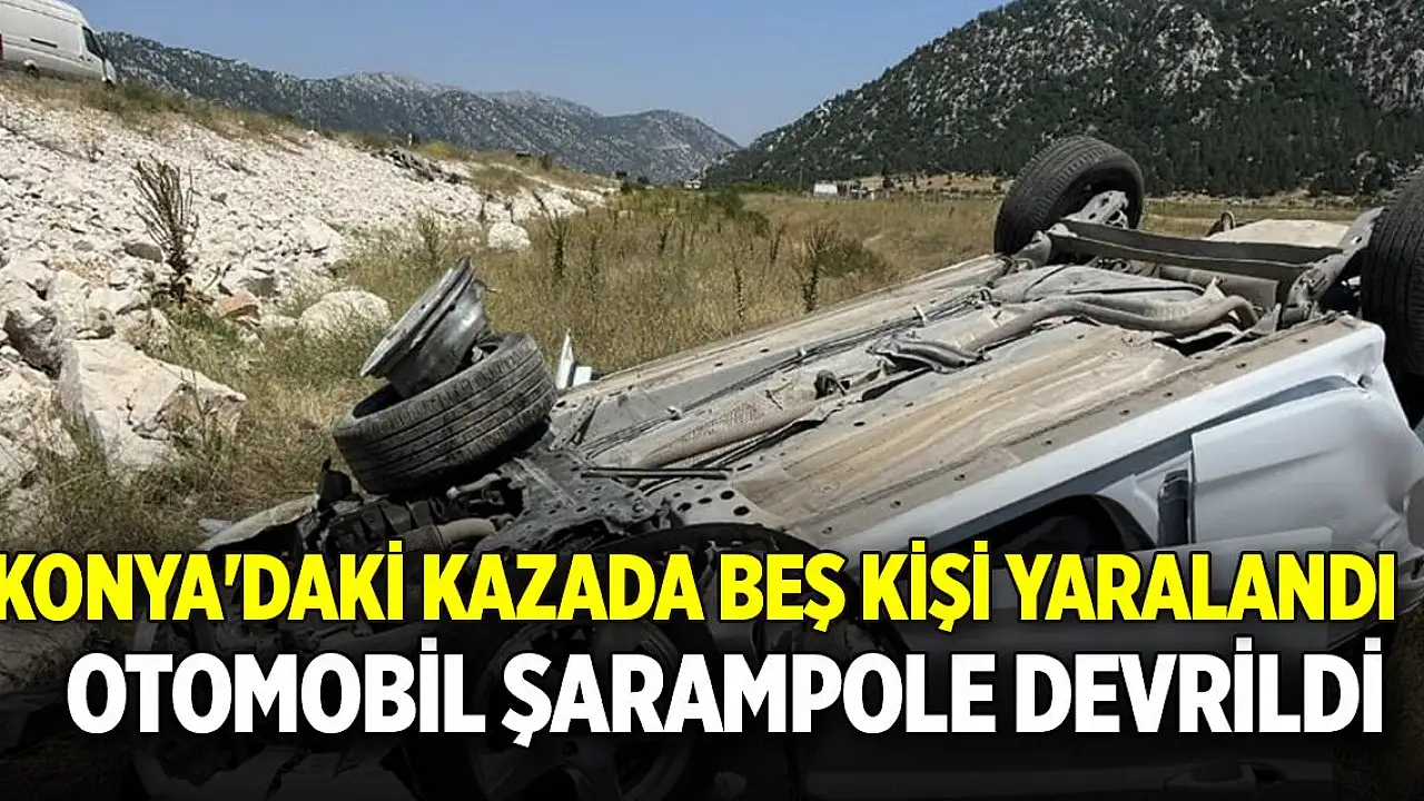Konya'da otomobilin şarampole devrildiği kazada 5 kişi yaralandı.