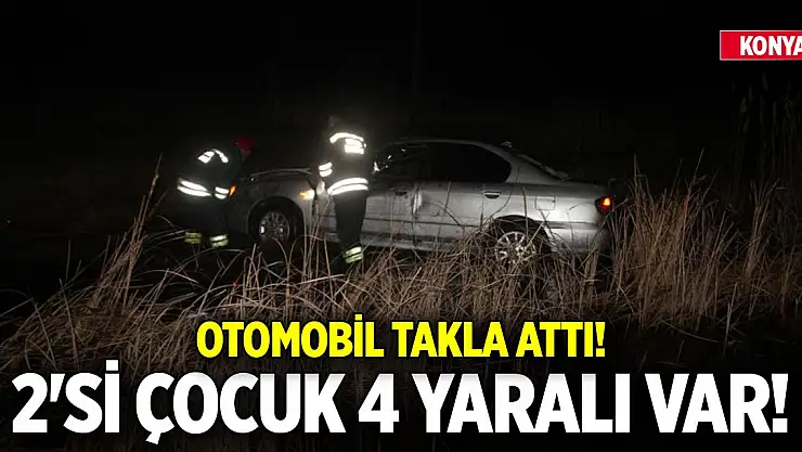 Konya'da otomobilin sazlık alandaki su birikintisine takla atması sonucu 2'si çocuk 4 kişi yaralandı.