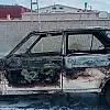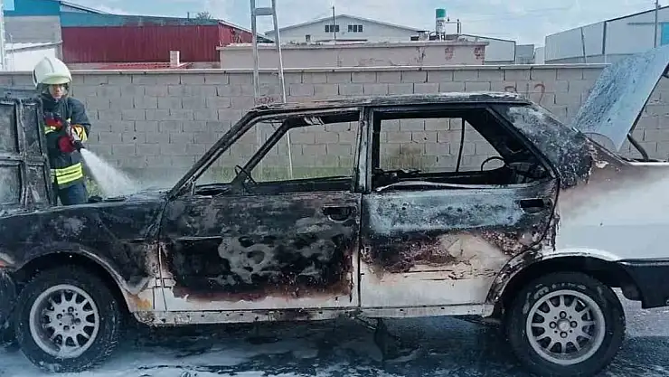 Konya'nın Karapınar ilçesinde seyir halindeyken yanan otomobil kullanılmaz hale geldi.
