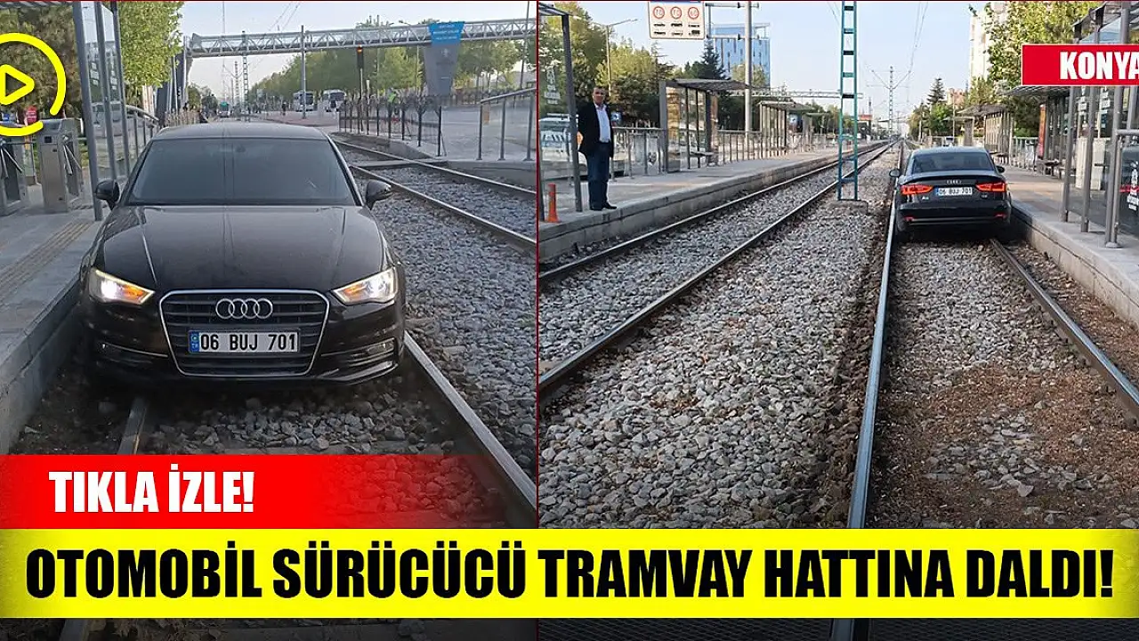 Konya'da otomobil sürücüsü tramvay hattına daldı!