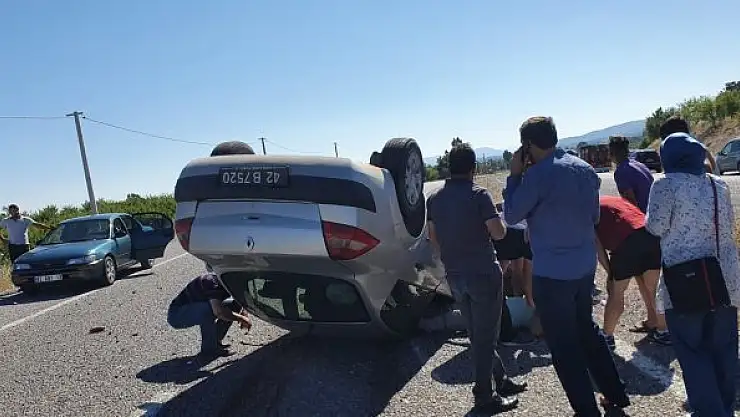 Konya'nın Beyşehir ilçesinde, bir otomobilin taklalar atarak karşı şeride devrilmesi sonucu meydana gelen trafik kazasında 2 kişi yaralandı.
