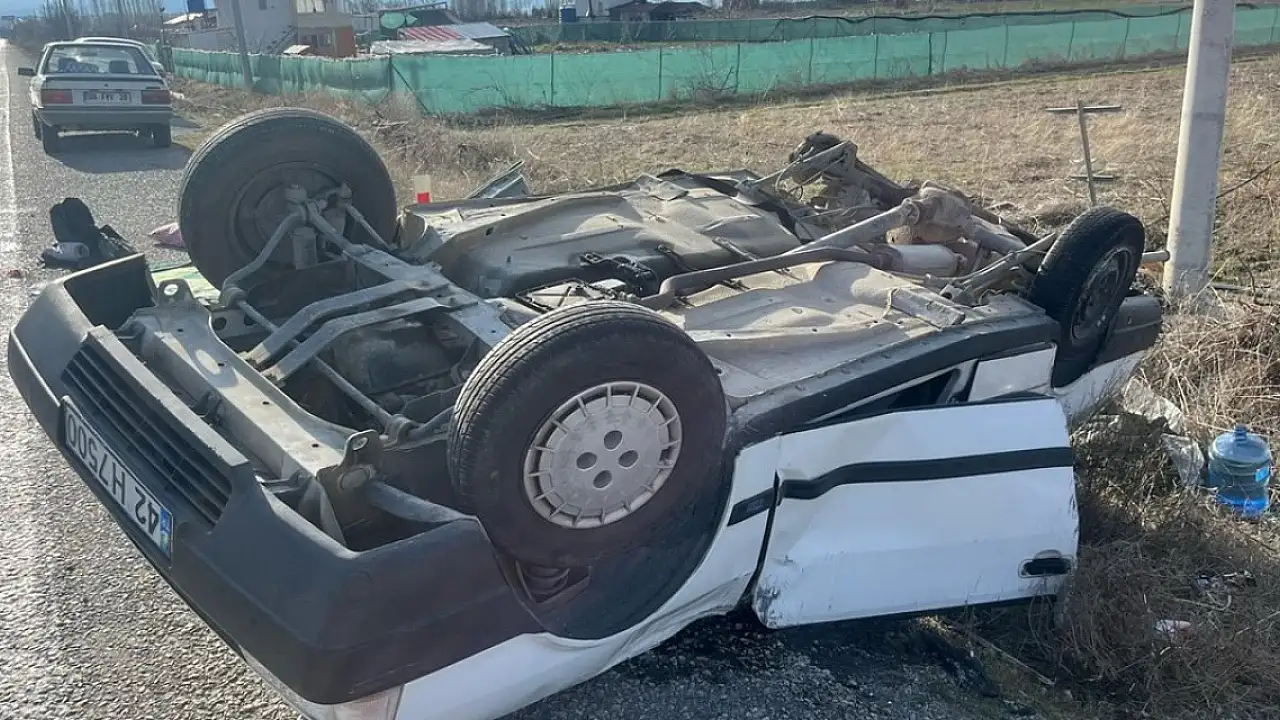Konya'da otomobil takla attı: 2 yaralı