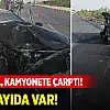 Çarpmanın etkisiyle kamyonet devrildi.