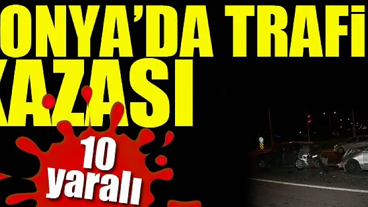 Konya'da trafik ışıklarında duran otomobile, arkadan gelen başka bir aracın çarpması sonucu 10 kişi yaralandı.