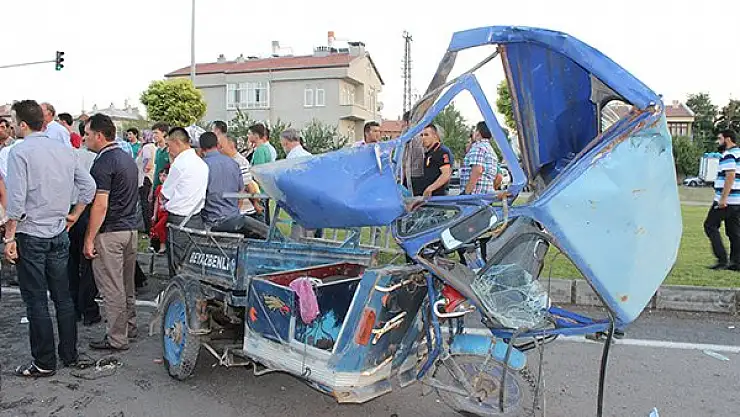 Kazada, triportör sürücüsü Mehmet Dikmen ile aynı araçta bulunan eşi Nimet Dikmen (57) yaralandı. Konya'daki hastanelere kaldırılan yaralılardan Nimet Dikmen, yapılan müdahaleye rağmen kurtarılamadı.