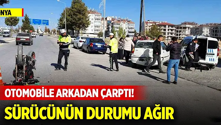 Konya'da otomobile arkadan çarpan motosikletin sürücüsü ağır yaralandı.
