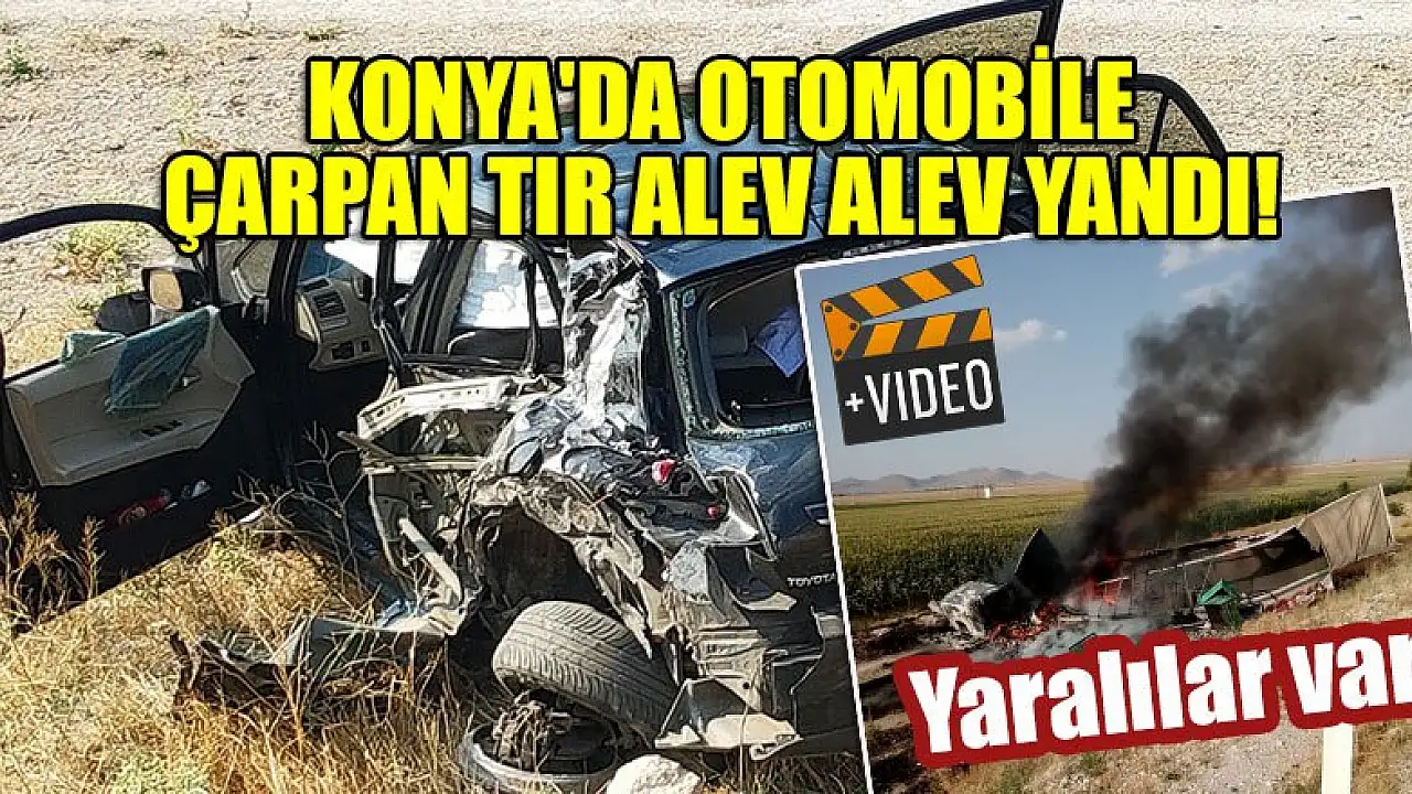Konya'da otomobile çarpan tır alev alev yandı! Yaralılar var