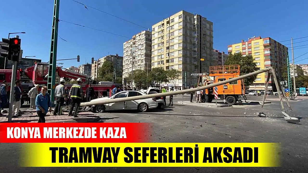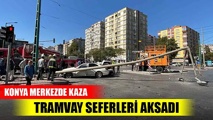 Konya'da 2 otomobilin çarpıştığı trafik kazasında otomobillerden biri aydınlatma direğine çarptı. Devrilen aydınlatma direği tramvay hattının tellerine devrilirken, tramvay seferleri aksadı, 1 kişi ise yaralandı.