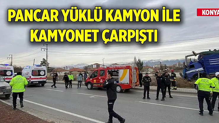 Konya'da pancar yüklü kamyon ile kamyonet çarpıştı