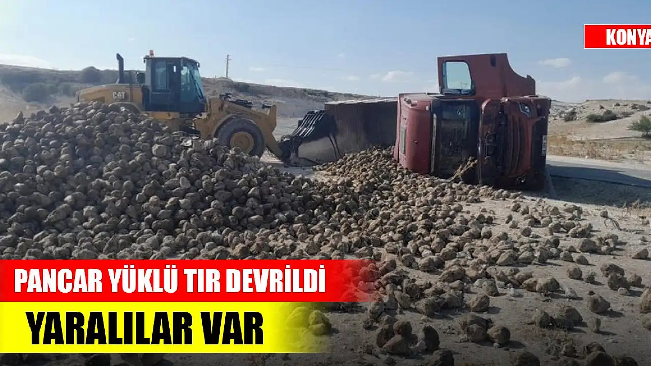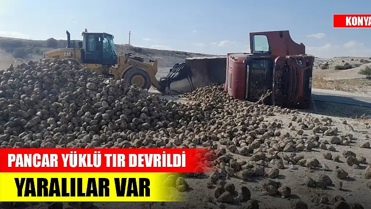 Konya'da pancar yüklü tır devrildi! Yaralılar var