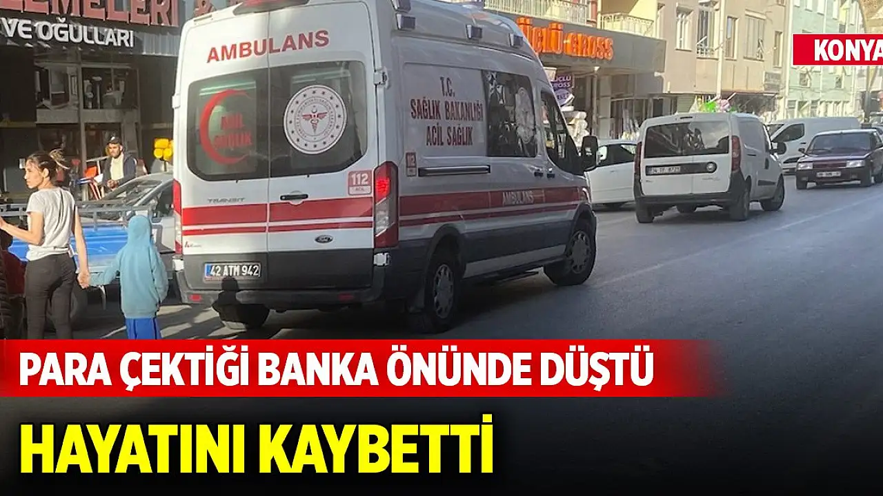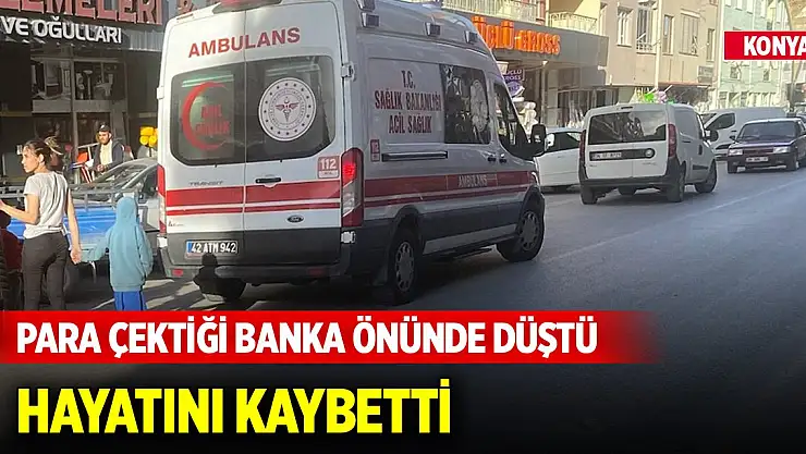 Konya'nın Kulu ilçesinde para çektiği banka önünde dengesini kaybedip düşerek başını sert zemine çarpan kişi hayatını kaybetti.