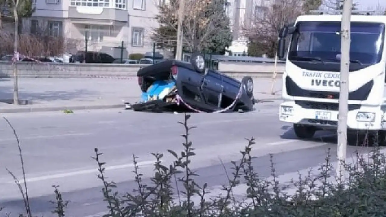 Konya'nın Aslanlı Kışla Caddesinde kaza meydana geldi. Meydana gelen kazada park halindeki araç başka bir araca çarparak takla attı.