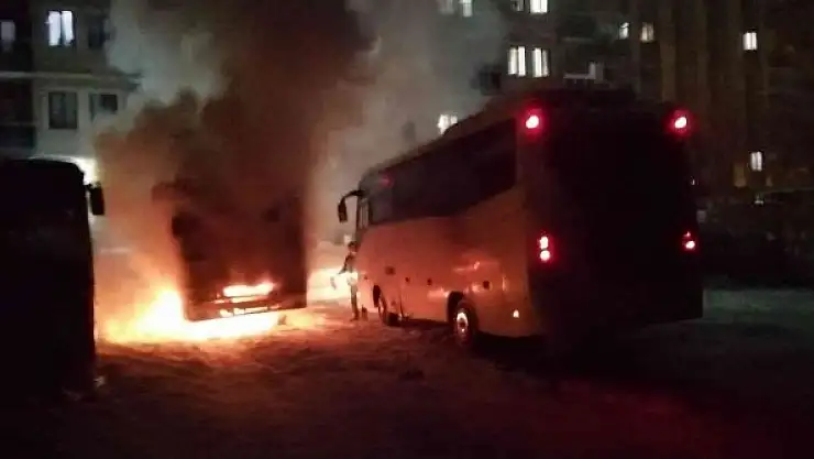 Konya'da park halindeki midibüs alev alev yandı
