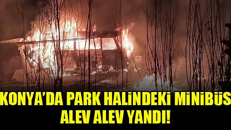 Konya'da park halindeki minibüs alev alev yandı!