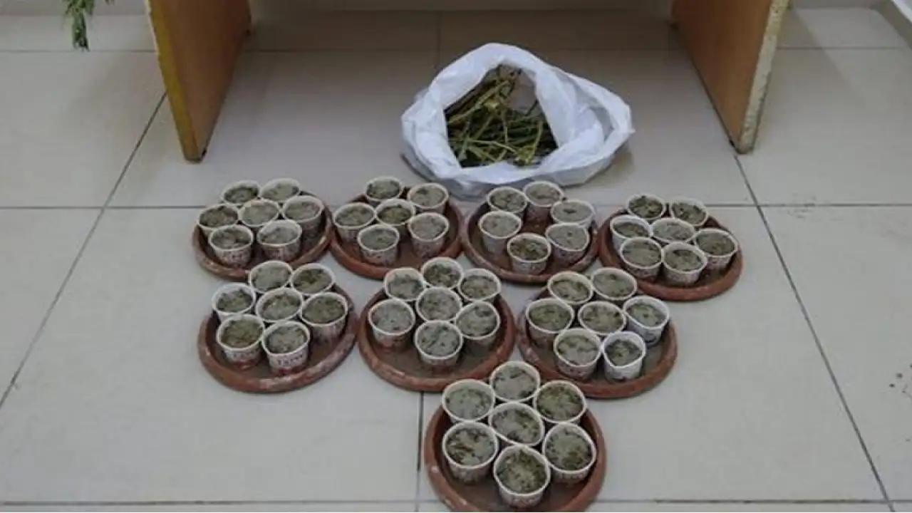 Konya'da pet bardağa ekilmiş Hint keneviri ele geçirildi