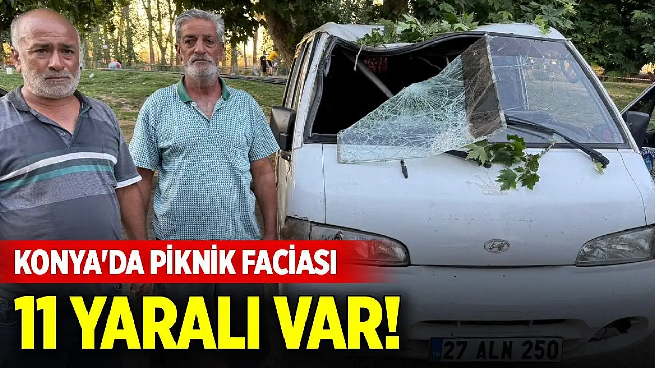 Konya'da ağacın kuruyan dalı, kırılıp piknik yapanların üzerine düştü 11 kişi yaralandı.
