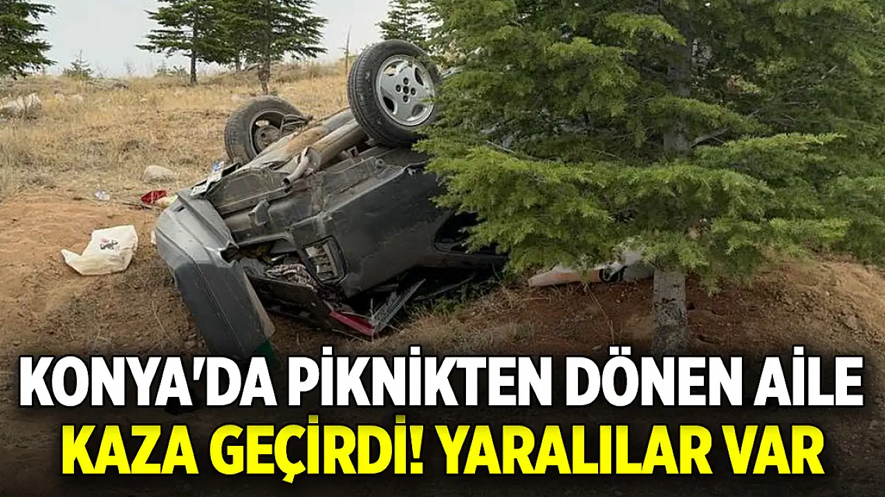 Konya'da piknikten dönen ailenin bulunduğu otomobil takla attı