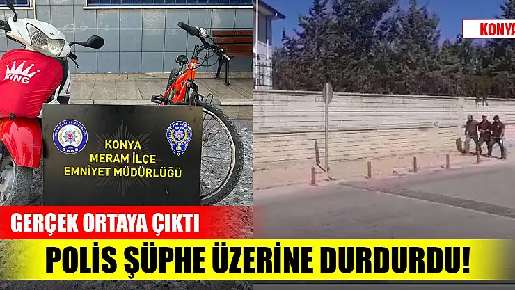 Konya'da polisin şüphelenerek durdurduğu bisiklet ve motosikletli iki kişinin, kasten yaralama, ruhsatsız silah bulundurma ve hırsızlık suçlarından arandığı tespit edildi. Ayrıca şüphelilerin kullandığı motosiklet ve bisiklet de çalıntı çıktı.