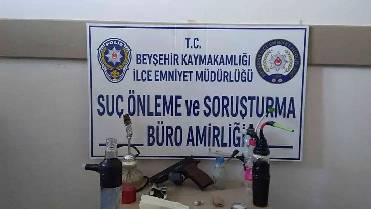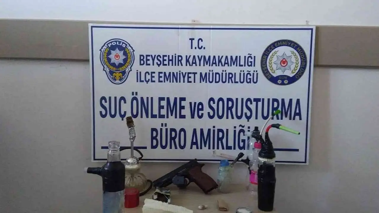 Edinilen bilgiye göre, Beyşehir İlçe Emniyet Müdürlüğü Suç Önleme ve Büro Amirliği ekipleri, S.C.'nin uyuşturucu ticareti yaptığı bilgisi üzerine kullandığı otomobili Dalyan Mahallesi Hal İçi kavşağında durdurmak istedi. Polisi görünce kaçmaya başlayan sürücü ile ekipler arasında kovalamaca yaşandı. Sıkıştırılan araç durdurulurken, yaya olarak kaçmaya çalışan S.C. ile yanındaki şahıs yakalandı. Beyşehir İlçe Emniyet Müdürlüğü'ne götürülen S.C.'nin üzerinde yapılan aramada bir miktar esrar ile metamfetamin bulunurken, araçta ise bir miktar metamfetamin, esrar, 2 adet yeşil reçeteye tabi hap, 2 uyuşturucu kullanmaya yarayan aparat, 1 hassas terazi ele geçirildi. Çalışmayı genişleten polis, iki ikamet ve bir iş yerinde yaptığı aramada da uyuşturucu kullanmaya yarayan aparat, 1 esrar öğütme aleti, bir miktar esrar maddesi, 1 adet 9 milimetre çapında ruhsatsız tabanca ve şarjör ele geçirdi. Polis, sürücü S.C. ile M.K. ve A.U.'yu gözaltına aldı.