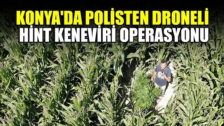 Konya'nın Karapınar ilçesinde, drone kullanılarak ekili alanlarda havadan inceleme yapan polis, 140 kök Hint keneviri ele geçirdi.