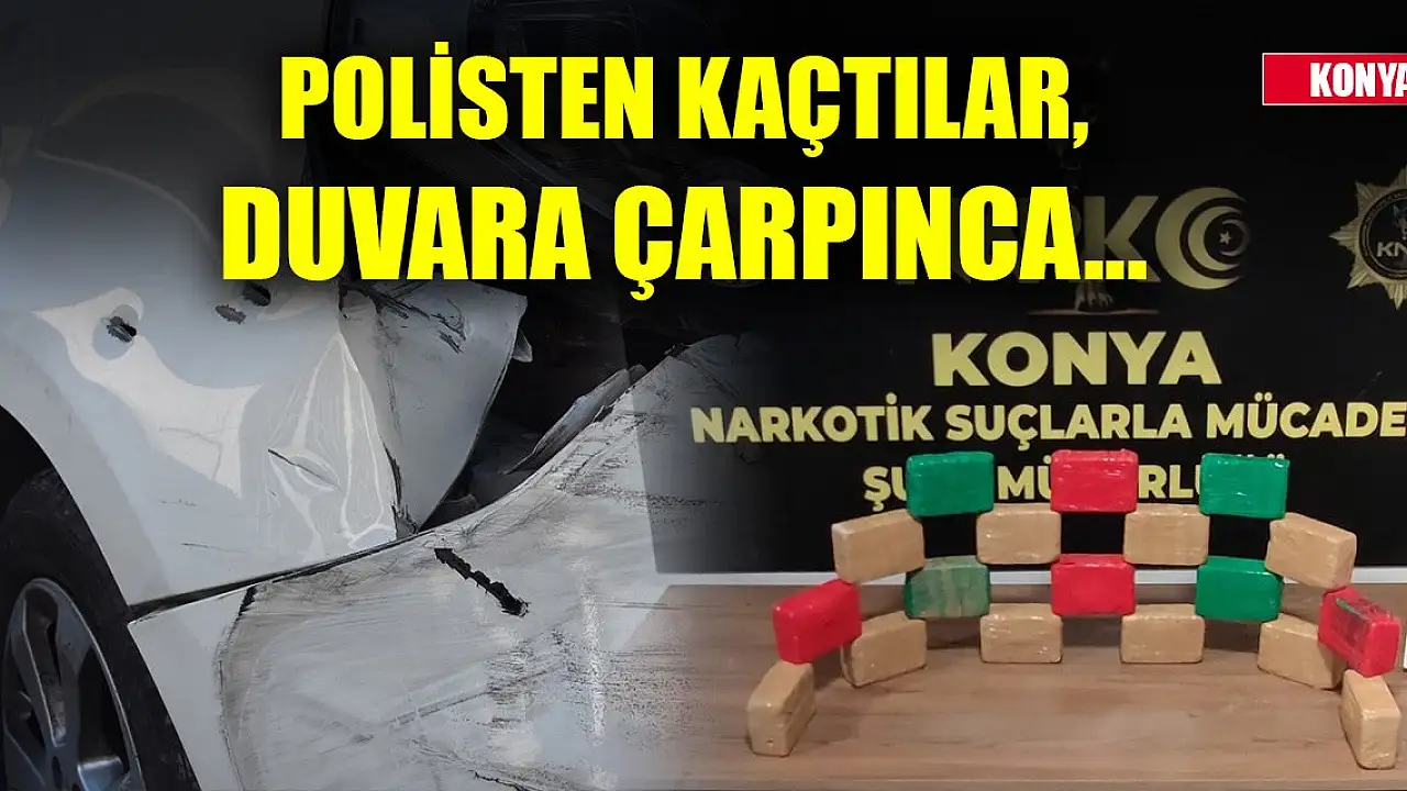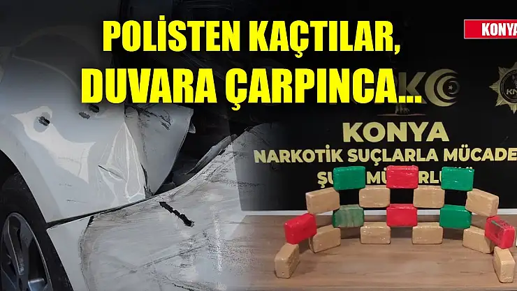 Konya'da polisten kaçtılar, duvara çarpınca 9 kilo uyuşturucuyla yakalandılar