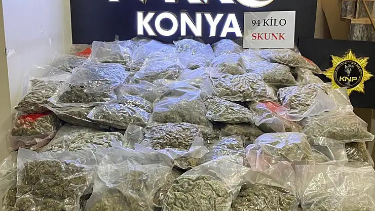 Konya'da polisin düzenlediği uyuşturucu operasyonunda 94 kilo skunk ele geçirildi.