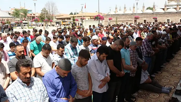 Konya’da 11 ayın sultanı mübarek Ramazan ayının son cuma namazında vatandaşlar camilere akın etti. Başta Sultan Selim Cami olmak üzere şehir merkezindeki tarihi camilerde yer bulamayan vatandaşlar, namazlarını dışarıda kılmak zorunda kaldı. Seccadelerini Mevlana Meydanı'na seren vatandaşlar, Ramazan ayının son cuma namazını eda etti.