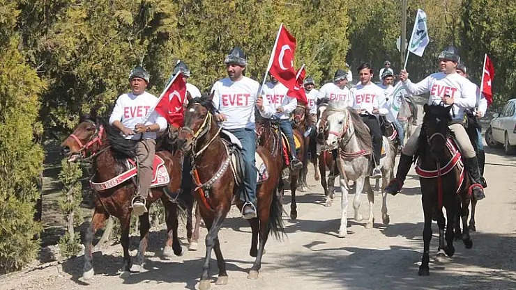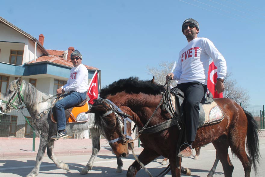 Konya'da, Rahvan Atlı Spor Kulübü 16 Nisan'da yapılacak olan referandum için yaklaşık 15 kadar atlı sporcu ile basın açıklaması yaptı.