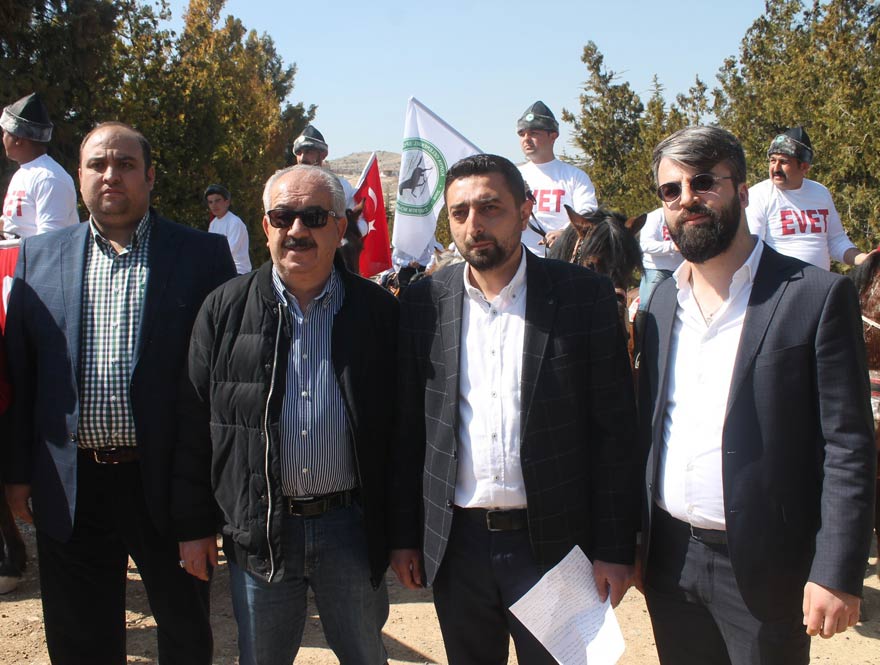 Merkez Meram ilçesi Tavusbaba Mesire Alanında açıklamalarda bulunan Rahvan Atlı Spor Kulübü Başkanı Ali Peksemerci, İngilizlerin çıkardığı futbol, Amerikalıların çıkardığı basketbol değil yerine ceddimizin, oynadığı ve teşvik ettiği rahvan atçılığı, atlı okçuluğu, güreşi oynamak ve tanıtmak istediklerini belirterek, “Bizler asil Selçuklunun, Osmanlının kanlarını taşıyan torunları olarak, dinimiz, vatanımız, bayrağımız için ailemiz ve güçlü bir Türkiye için evet diyoruz. Unutulmamalıdır ki, yiğit düştüğü yerden kalkar referandum da evet çıkmasını sadece biz Türkler değil Ortadoğu’daki, Afrika’daki, Batı Trakya’daki ve Doğu Türkistan’daki kardeşlerimiz beraber beklemektedirler. Bu bağlamda Konya Geleneksel Spor Dalları ve Rahvan Atlı Spor Kulübü olarak referandumda evet diyeceğimizi kamuoyuna saygıyla duyururuz” dedi.