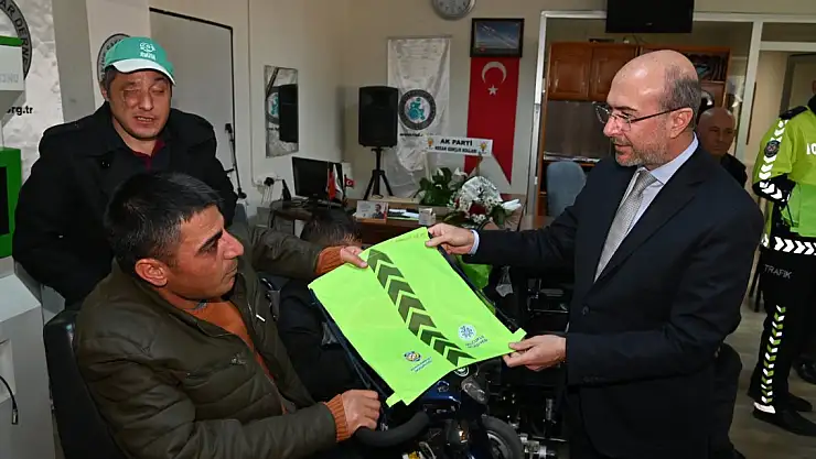 Konya'da reflektörlü uyarı çantası ile engelliler trafikte fark edilecek