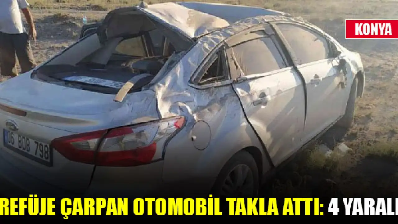 Konya'da refüje çarpan otomobil takla attı: 4 yaralı